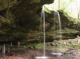 Far south within the Hoosier National Forest is a nature preserve with a challenging hike up a stream valley, stream bed ending at two small waterfalls from the cliffs of this valley.