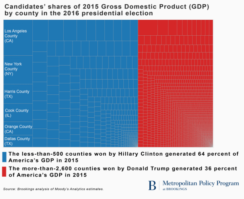 Dems Win Even Fewer Counties in 2016, But an Increased 64% of GDP!