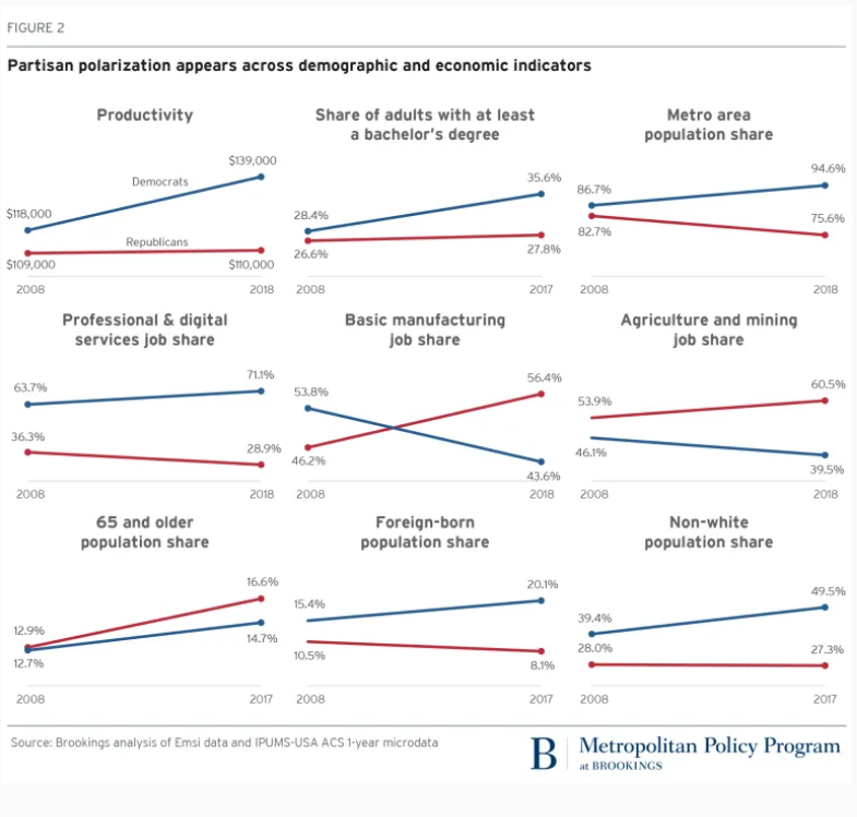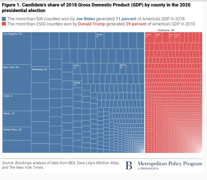 The Post-Trump Republican Party is distinctively different, representing a broader share of the American geography, but a smaller share of its income, production and diversity. This split reinforces the polarizing tendencies of recent decades, making attempts to find “common ground” at the national level more difficult.