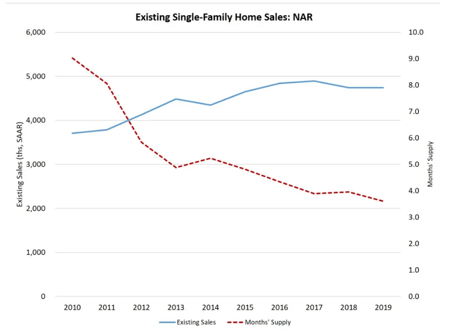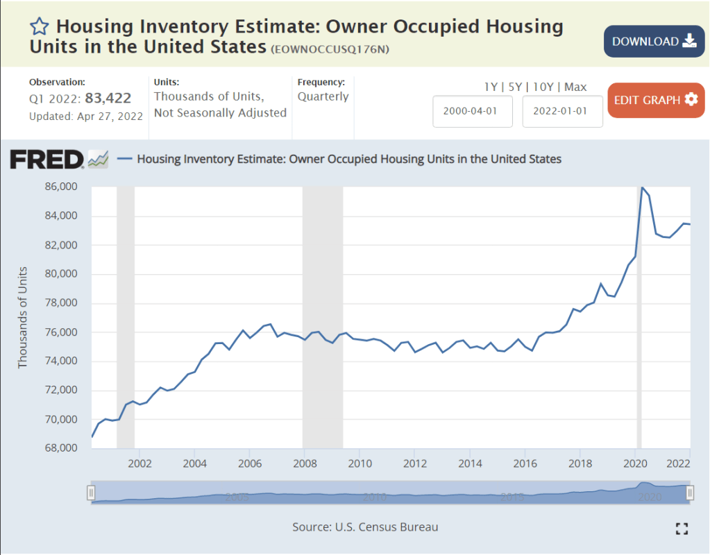 The number of owner-occupied (single-family) homes reached a peak of 76 million in 2006 and then flat-lined for eleven (11) years through 2017. An estimated 8 million homes have been added in the last 5 years, about 1.8M per year after zero per year for 11 years.