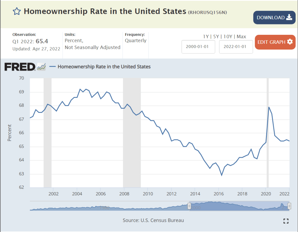 The “American dream” of single family home-ownership remains. Buyers continue to try to recover from the decline from 69% in 2006 to less that 64% in 2015.