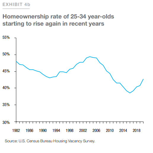 The US added less than one-half of the usual amount in the teens, driving the median housing stock (owner-occupied) age up from 33 to 39 years. So, it’s even more than the 5 million housing units that weren’t built. The whole stock is older. More units require maintenance. More people are waiting to have the new or “newer” home ownership experience.