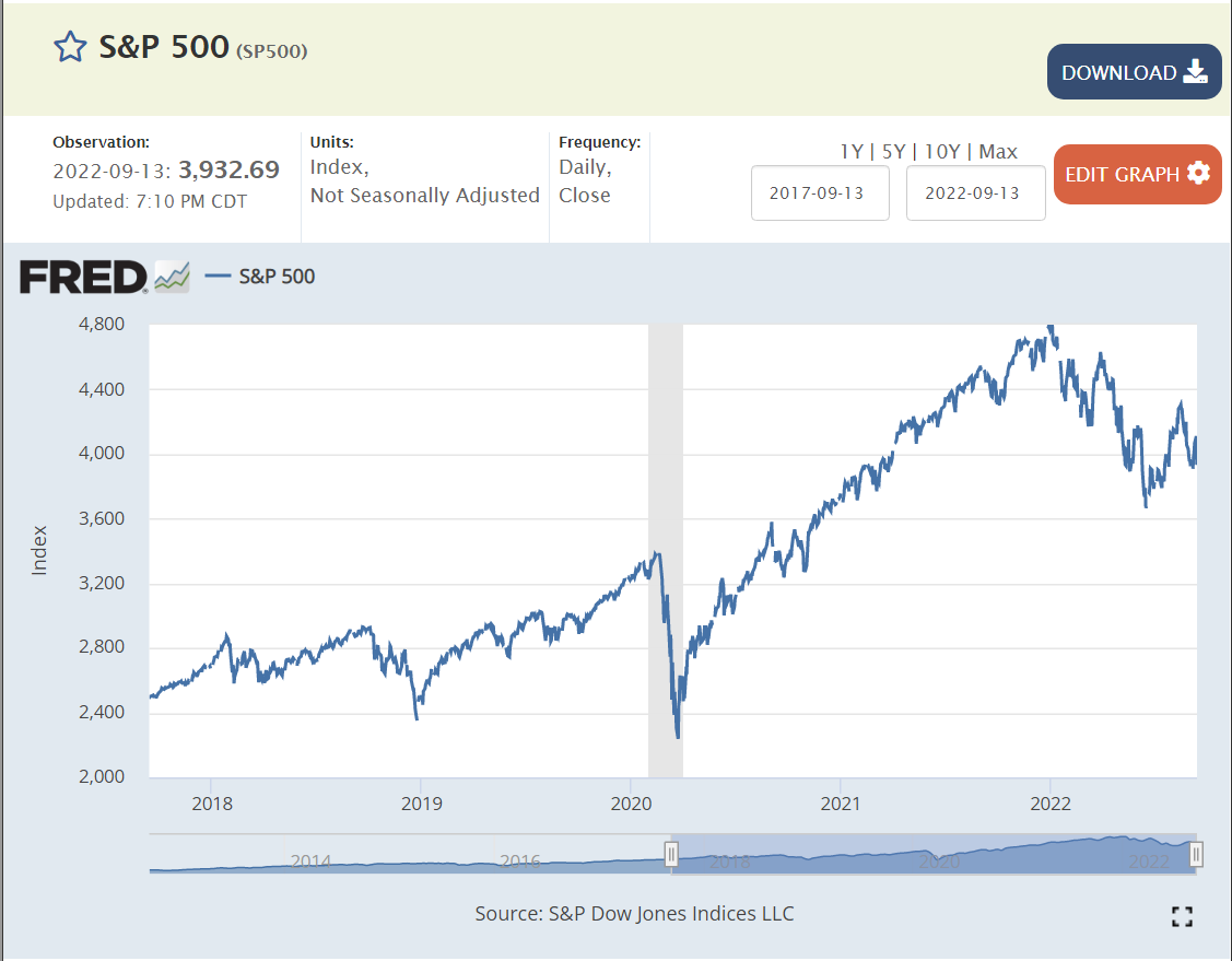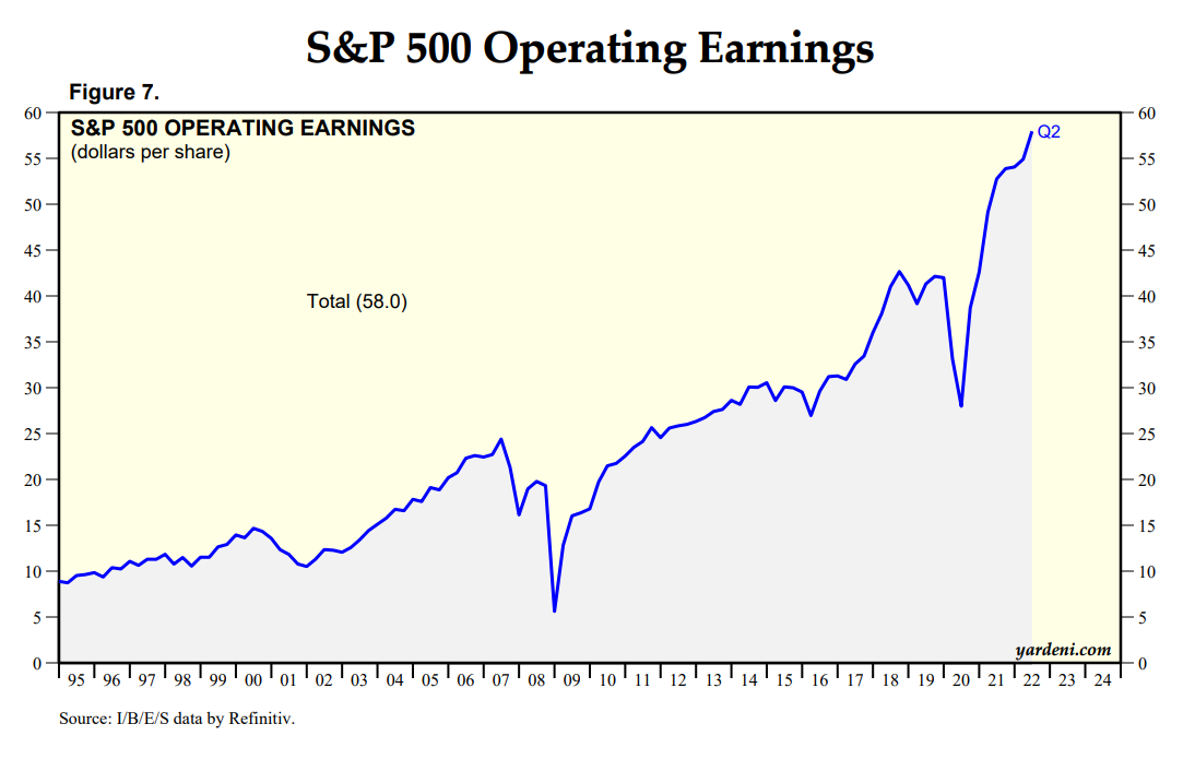 Stock prices tend to follow profits. The S&P 500 index has grown by 50% in the last 2 years (despite the recent decline), reflecting the amazing growth in corporate profits during a “once in a century” pandemic driven recession.