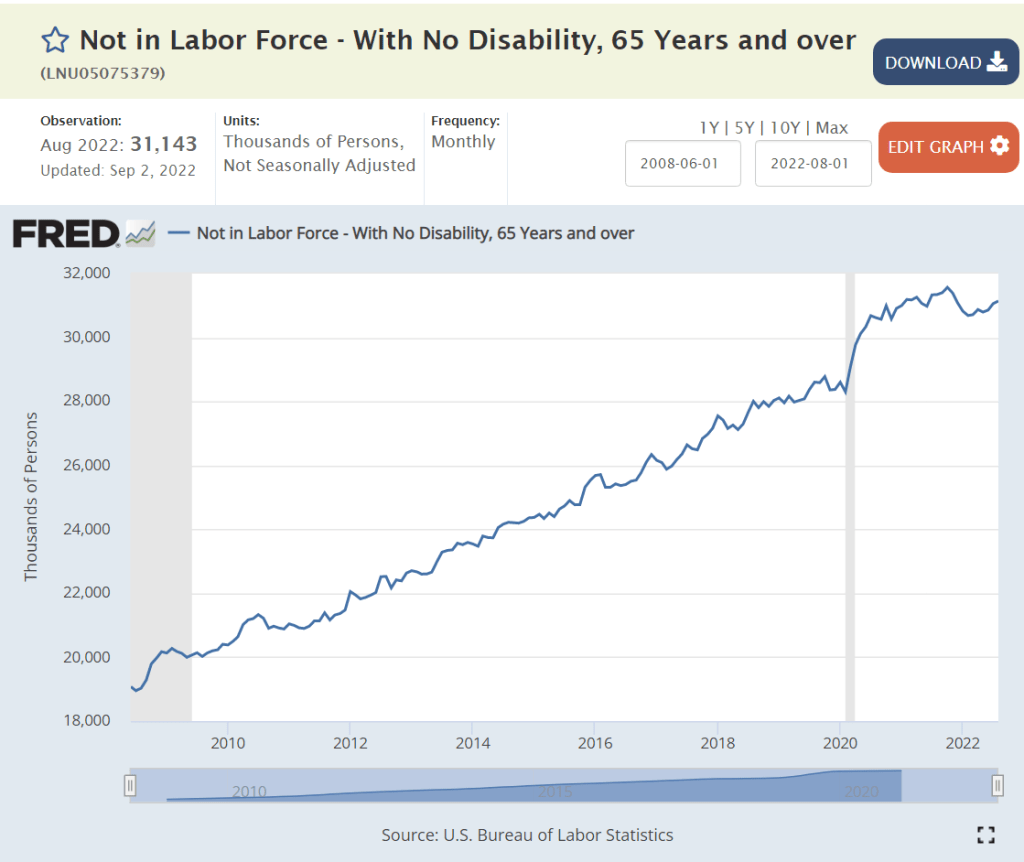 Early estimates of the impact of the pandemic on retirement age workers indicated 2-3 million “extra” workers retired during this time.