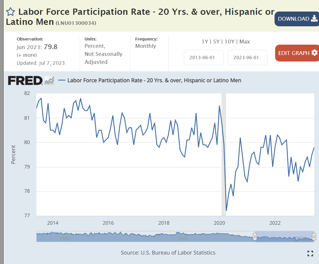 Hispanic men remain 1% below their pre-pandemic labor force participation rate.