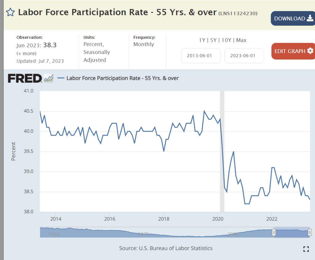 The retirement age workforce reduced its participation rate by 1.5% and has stayed there after a brief pseudo-recovery.