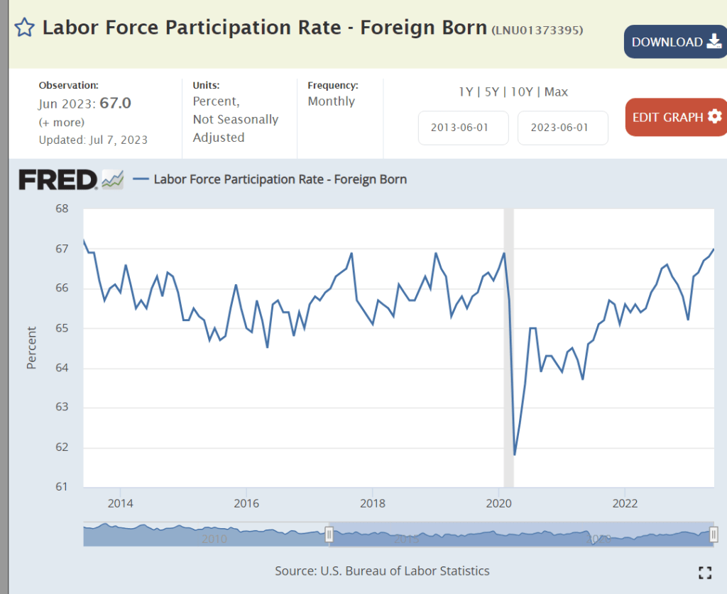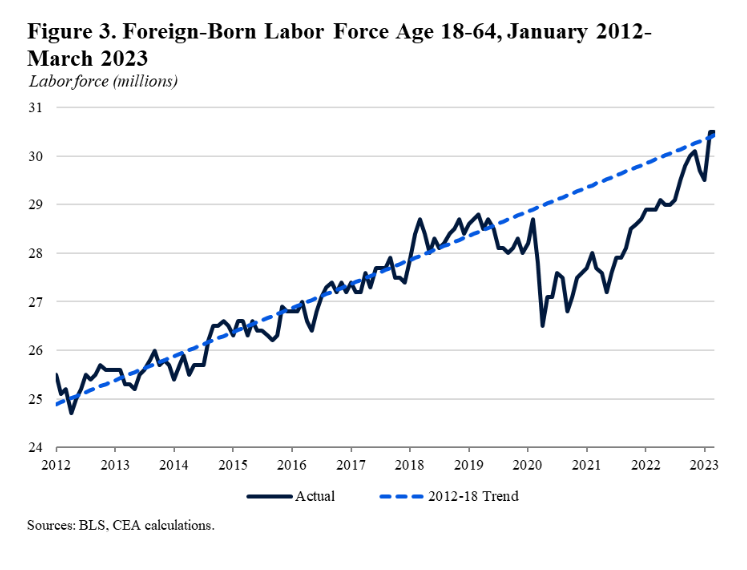 This participation growth improvement has taken place as the foreign-born population has increased to its trend growth rate.
