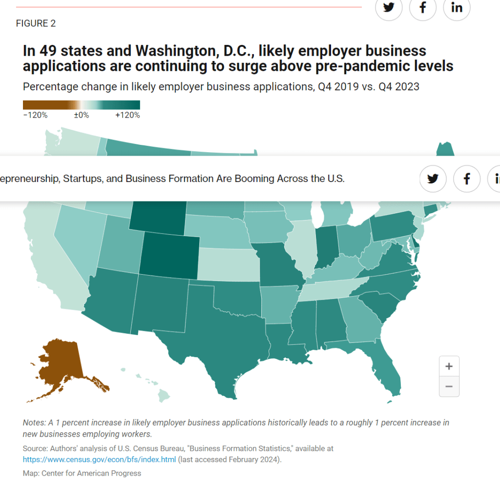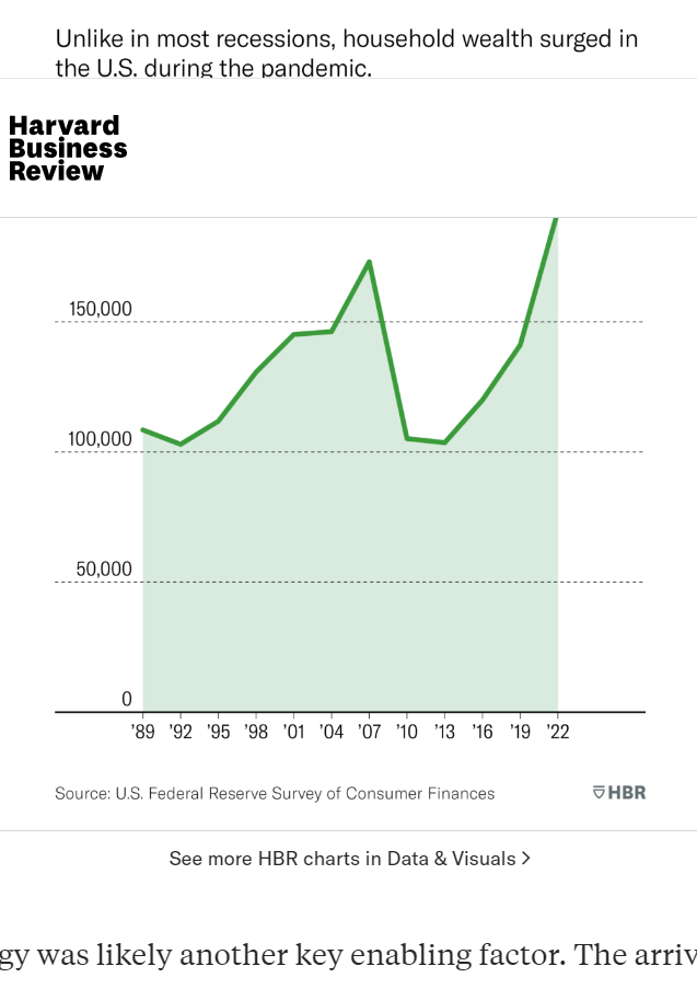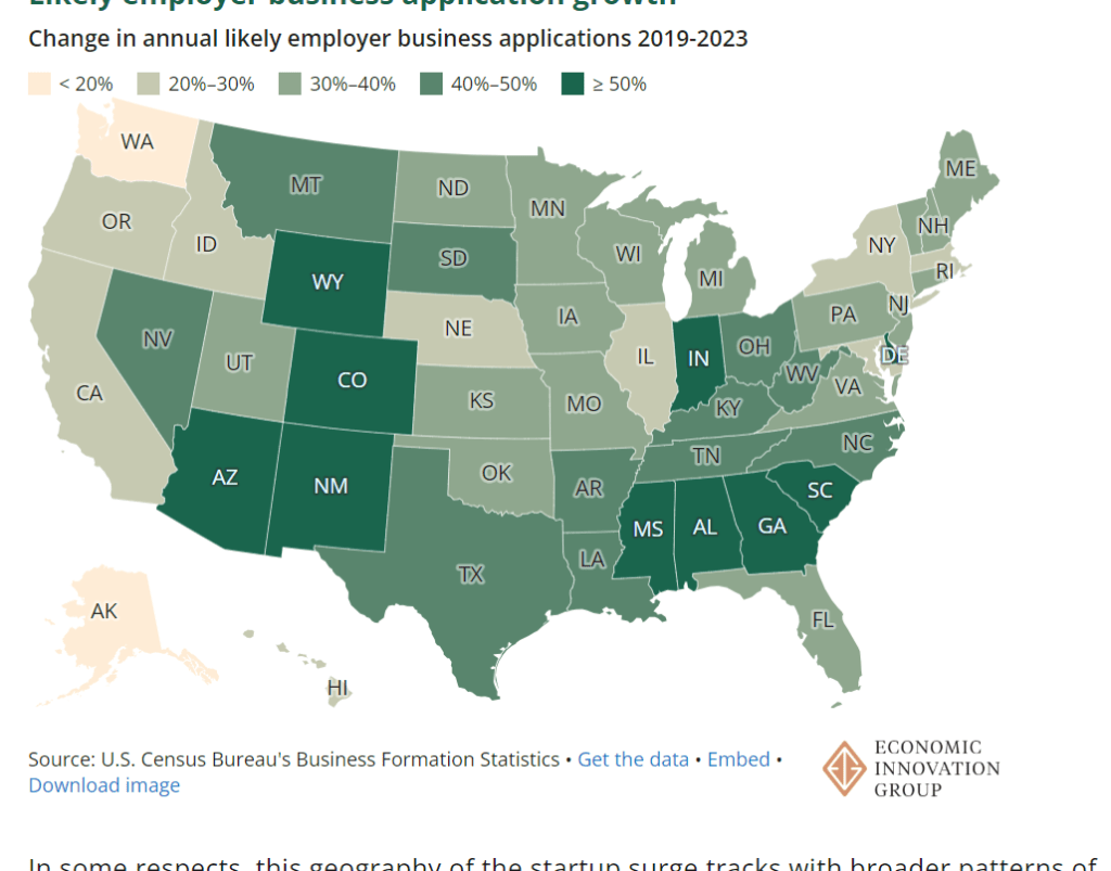 Why/how did this happen? US economy did not see wealth destruction during the pandemic as occurred in the Great Recession. Bipartisan government funding during the pandemic protected small businesses and individuals. The US labor market was strong before the pandemic and recovered very quickly to full employment with high quit rates, high job openings, low layoffs, wage growth, high labor force participation, and new immigrants included. There was no “credit crunch” destroying businesses. Venture capital firms were flush with capital, able to invest in the very best prospects. The US economy was mature as an “information age” economy, identifying opportunities. The virtual economy was mature, allowing individuals with minimal technical skills to easily create new businesses, market their services, and engage skilled resources. Individuals experienced being out of work and at home and determined that they could create new firms from home.