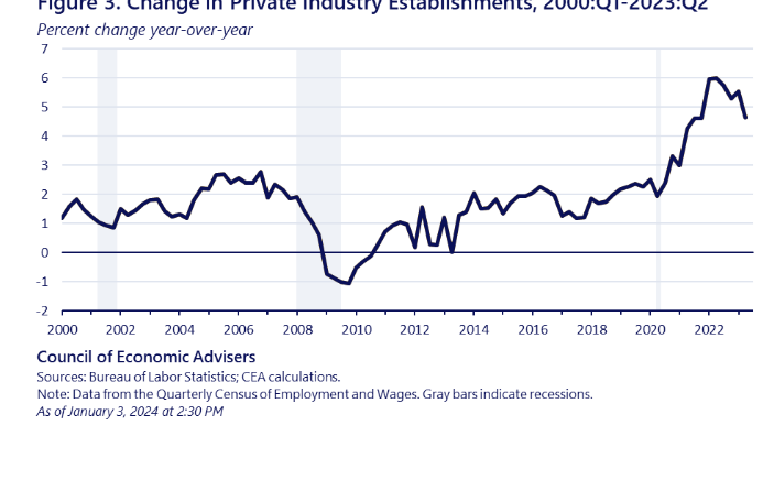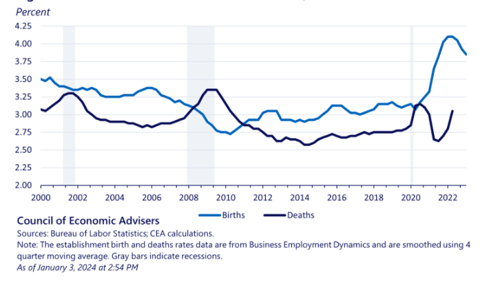 As Wendy’s Clara spokeswoman exclaimed long ago, “show me the beef”. Did the increased rate of tax applications during 2021-22-23-24 result in new firm creation?