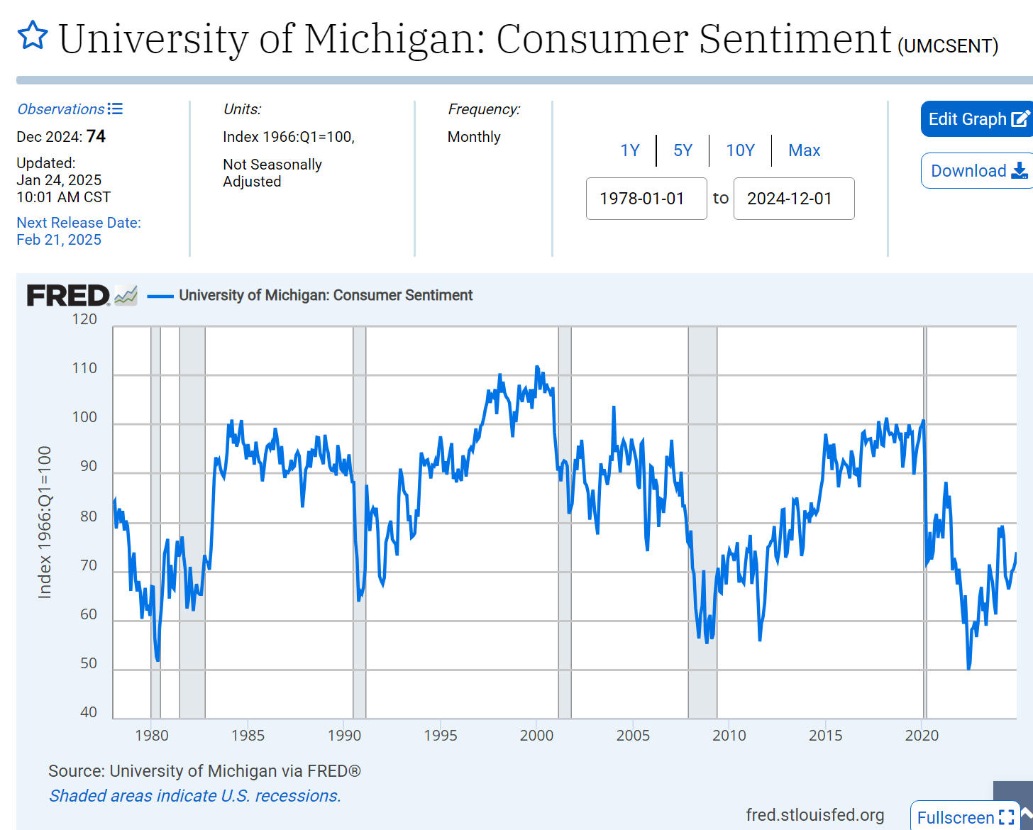 Consumer confidence rises with the economy and declines with recessions and polarized politics, but it has no upward trend to match real incomes!